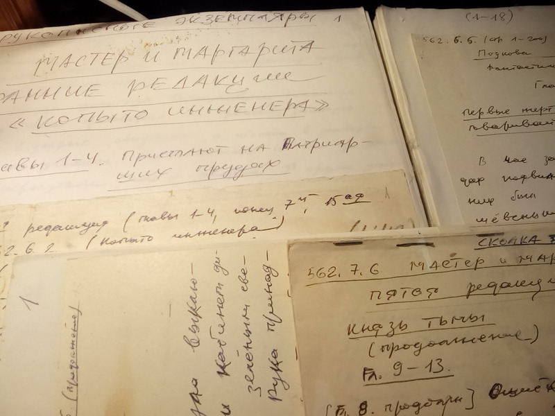 https://majstavitskaja.livejournal.com/113316.html Пришла пора проститься. Не плохо и не хорошо, так есть.А все же в Москве, когда появилась возможность провести несколько часов, как хочется; первое, что предложила дочери был квартира на Большой Садовой 302-бис. Нет, священного трепета, как с зачеткой Гумилева в музее Ахматовой и сачком Набокова в его квартире, не пережила. А все же. И скульптуры у входа, и голова Берлиоза (афроафриканца? таджика?) под трамваем в коридоре. И рукописи Мастера. И скульптурный портрет его. И рисунки Нади Рушевой.