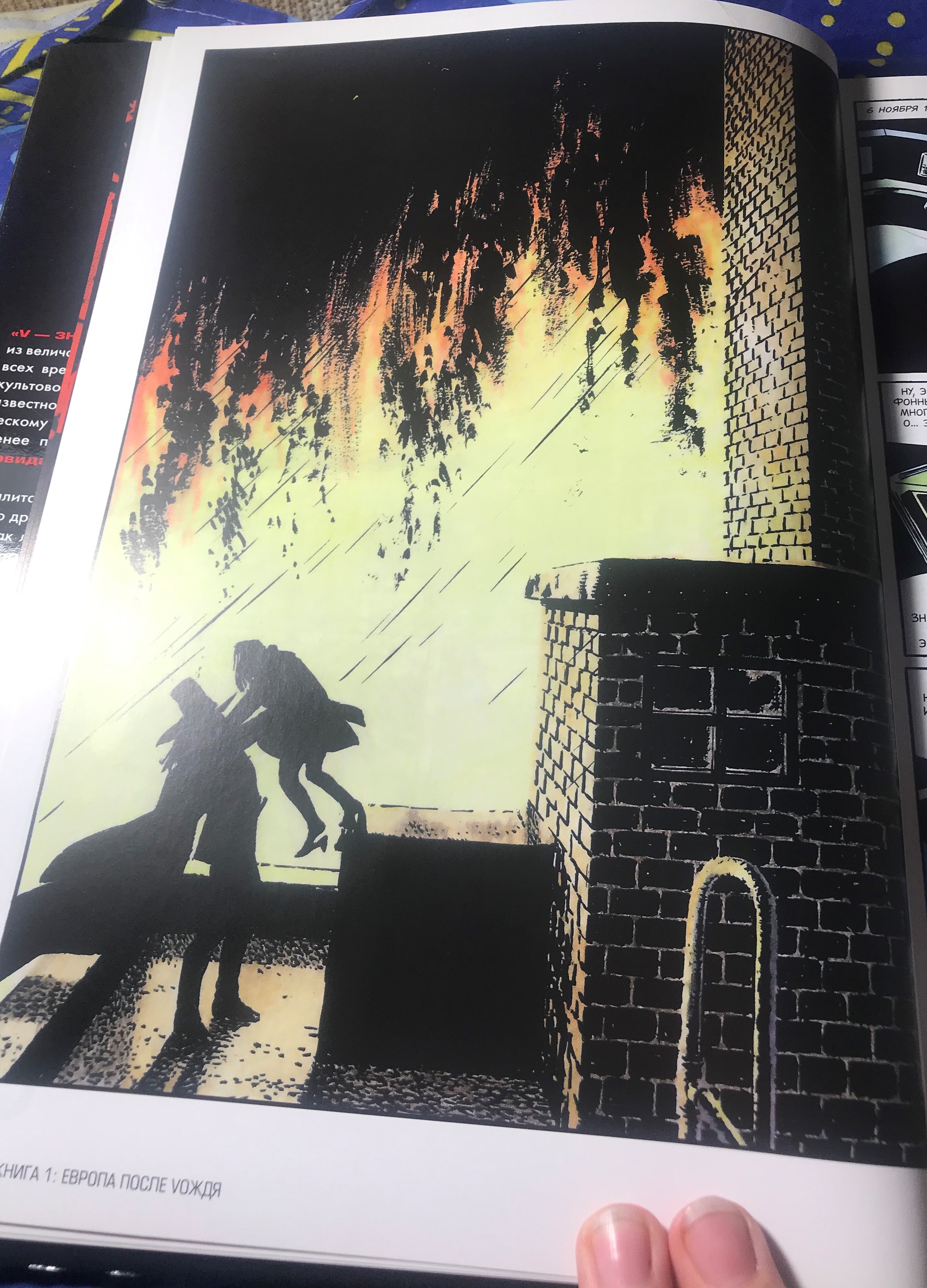 Ох, герои, который очень очень трудно судить лично мне. И вроде бы V анархист, он разрушает систему, он убивает людей, но та лёгкость, то мастерство, с которым делает это этот персонаж. Огромное спасибо художникам, колористам и сценаристам - они чуть ли не показывают свет в самых тёмных поступках и тьму в самых светлых. Мы просто не знаешь, чью же позицию тебе занять, поскольку кажется, что каждый прав. Возможно я такая же как и Иви - живу в своей зоне комфорта, вон, читаю даже порционно, боясь нарушить границу и освободиться.