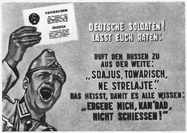 «Немецкие солдаты! Долой развязанную Гитлером грабительскую войну! Да здравствует дружба между немецким и русским народами!»
