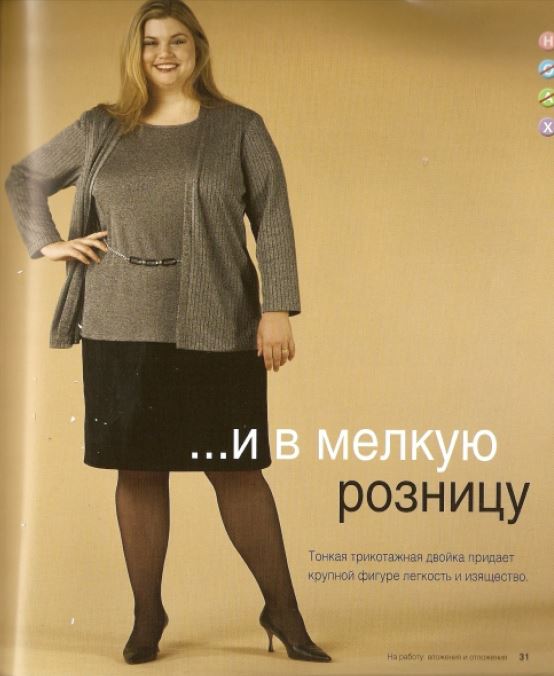 Все содержание сводится к нескольким страницам текста, предваряющим разделы с фотографиями крупных и не очень крупных дам в разных туалетах. К слову сказать, все дамы, несмотря на свои нестандартные для моделей параметры, достаточно привлекательны и отторжения не вызывают, конечно. А вот их наряды вызывают много вопросов.