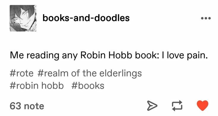 Знаете, Шута я полюбила еще с первой книги - Королевского убийцы, но тут он меня просто покорил. Он вызывает во мне только две эмоции - безмерную радость и совершенно невыносимую боль. Вот серьезно. Именно из-за него я считаю, что Фитц мог бы выбрать другой путь...