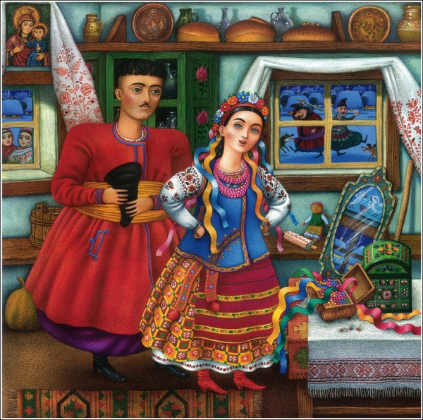 А еще на чтение повести меня натолкнуло огромное количество картин, нарисованных разными художниками к этой повести (рассказу). Мы посетили месяц назад Дом Гоголя в Москве, где он жил на первом этаже у Толстых и в одной из комнат были собраны репродукции к его книгам. Гоголь рисует такие сказочные образы, что хочется их видеть на картинах. Чудесных, украинских, с казаками и украинскими домиками:)