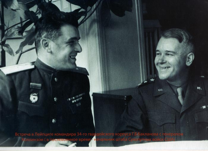 — Что за черт! — почесал в затылке Бельский. — Вы, Глеб Владимирович, какую-нибудь логику видите? Противник даже не сопротивляется, а мы должны обороняться от него!»В финале книги интересно и подробно описана сцена ритуальной встречи с союзниками на Эльбе. «Официальные встречи должны проходить на нашем берегу по рангам. Сначала должны встретиться командиры полков, потом — комдивы, далее — комкоры.» Сам Бакланов встречался с командиром 5-го армейского корпуса генерал-майором Хубнером.