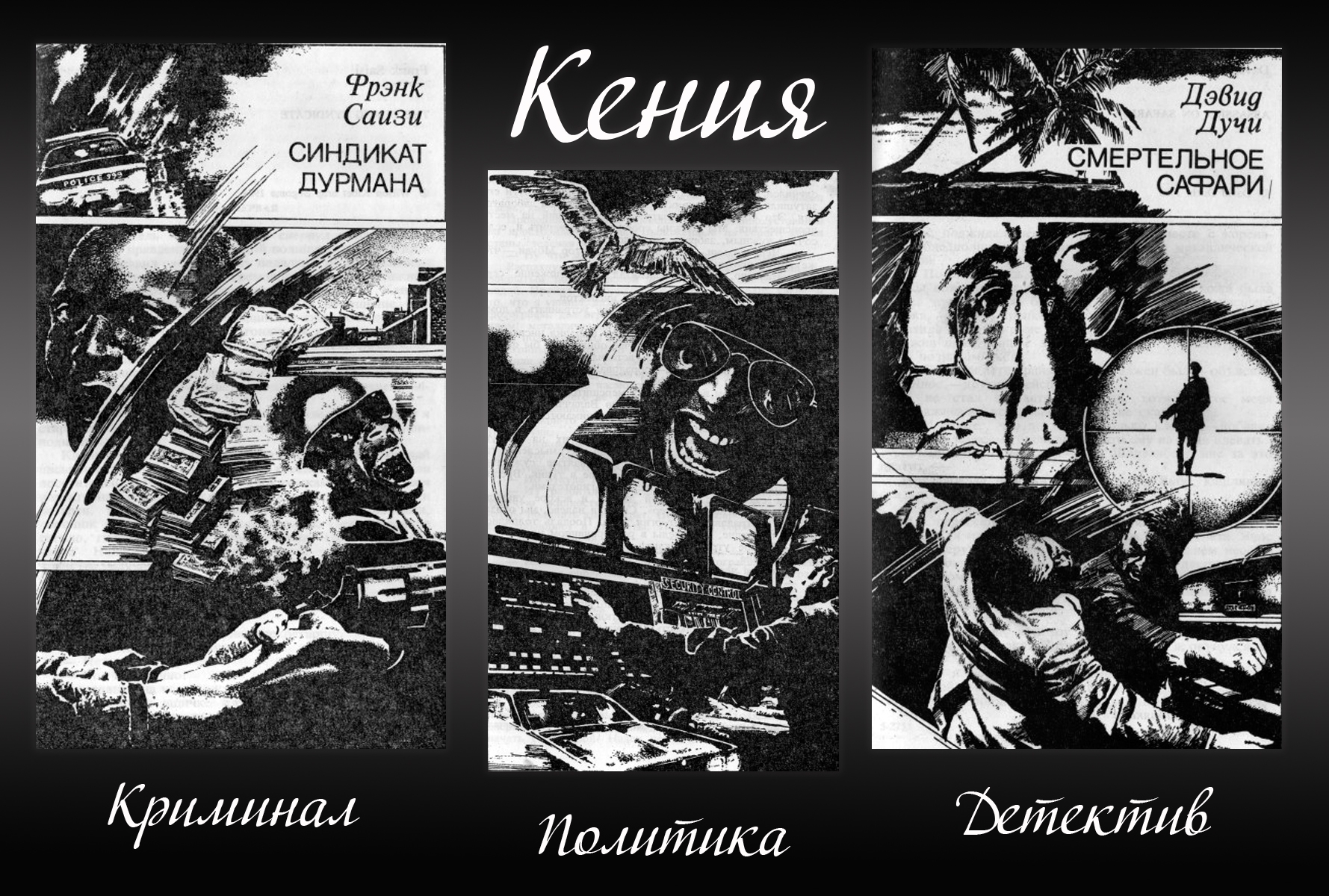 Книга содержит 3 романа кенийских авторов, которые с трудом можно отнести к детективам, скорее это остросюжетный роман с элементами шпионских и криминальных произведений.