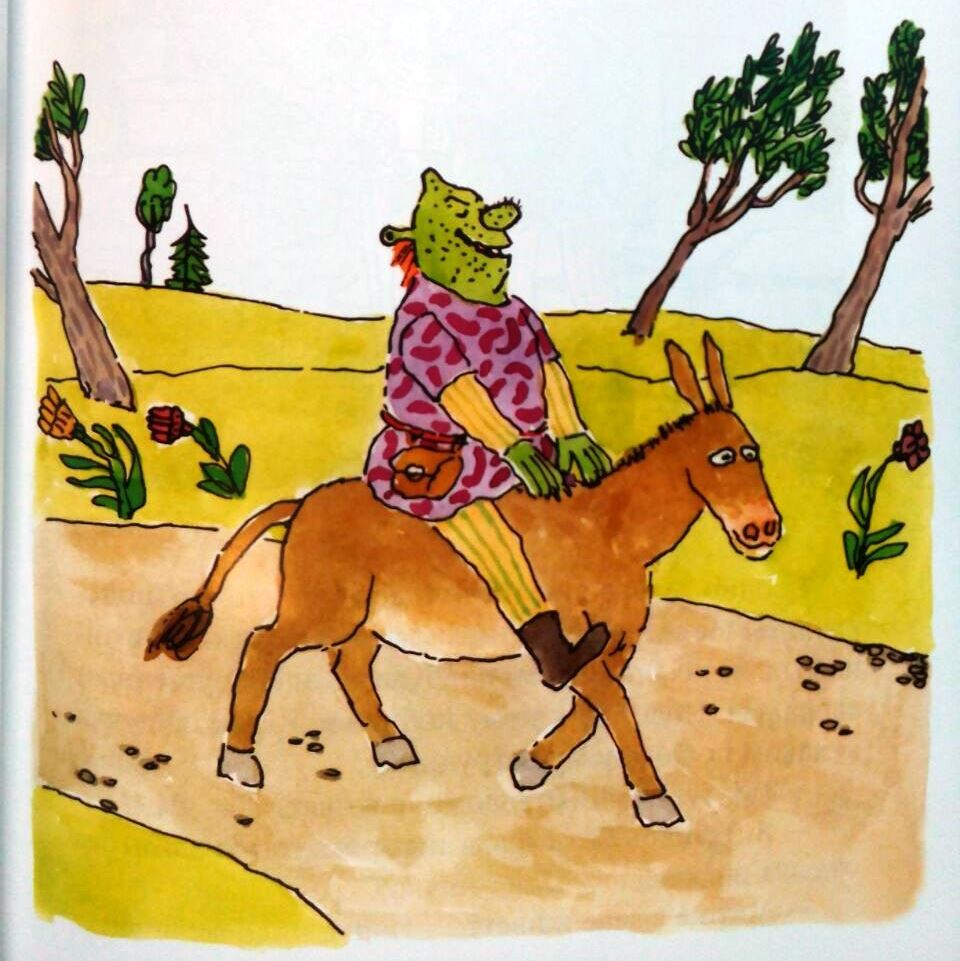 Впрочем, лично я вчера удивилась по совершенно другому поводу: ка-ак, «Шрека» написал Уильям Стейг? Тот самый Уильям Стейг?? Автор «Амоса и Бориса» и «Как шлёп обиделся»??? Это был шок. Я не могла понять, как самая известная книга самого известного американского иллюстратора прошла мимо меня. Но мои друзья развеяли всякие сомнения, когда вручили «Шрека».