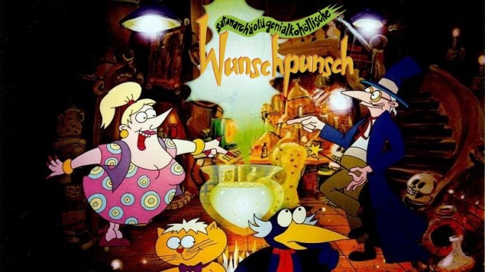 И о переводе. У книги несколько переводов плюс перевод мультфильма, и везде название ВуншПунша и имена злодеев переведены по разному, это конечно не удивительно, но показалось забавным. Тирания, она во всех переводах Тирания, меняется только ее фамилия: Вампадур, Вампирьевна, Кровосос. Вельзевула же везде зовут по разному: в мультике он Бубоник Ирвитцер, а в переводах Бельзебуб Шуткозлобер, Везельвул Бредовред и Везельвул Заморочит. Название спецпунша тоже везде разное, но его приводить не буду, очень уж слово заковыристое))Книга повествует о двух незадачливых злых колдунах, которые не справились с планом по злодействам. И теперь, чтобы избегнуть наказания, вынуждены прибегнуть к крайним мерам, а именно к изготовлению волшебного Спецпунша, который исполняет любые желания. Только учитывая, что рецепт был изобретен злыми колдунами, желания исполняет он точно наоборот. Поэтому чтобы повергнуть мир в хаос и бедствия, колдуны должны желать миру и его жителям счастья, здоровья и процветания, рассчитывая при этом на прямо противоположный результат. Что они и делают, причем в стихах, и этот момент был довольно забавный. Как и то, что в ВуншПунше присутствует алкогольный ингредиент, и в процессе наши злодеи так им укушались, что в прямом смысле уснули под котлом, и не смогли сообразить, что зелье сработало совсем не так, как задумано.