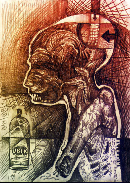 И вроде бы все понятно и обыденно – и дверь, и чайник, работающие за монеты, – но вот команда анти-пси отправляется на Луну, чтобы нейтрализовать организацию телепатов, и выстроенная действительность рассыпается, как не собранный пазл. Герои романа попадают в подготовленную для них ловушку – происходит взрыв – и не только взрыв бомбы, но и взрыв мозга читателя. Те, кто вроде бы выживают после взрыва, оказываются умершими; те, кто погибли, – напротив, оказываются живы. Грани между этим и тем (или тем и этим) мирами стираются, один мир проникает в другой, время идет вспять, уничтожая людей и предметы еще до их появления. Не раз на страницах книги рушится и заново создается реальность, и даже не реальность, а представление о ней (и здесь включается "Матрица"). Границы стираются и все погружается в хаос. И в этом хаосе каждый раз возникает он – Убик – универсальное средство, заново выстраивающее границы и способствующее обретению формы.