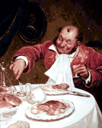Клиент нервничает, беспокоится, ему кажется, что он уже заслужил обещанную награду в виде круглых кулинарных изделий, а его всё томят, всё откладывают. И вот - торжественный момент настал, блины поданы. Семен Петрович успел сдобрить их икрой и сметаной, украсить сёмгой и сардиной... Но вкусить плодов деяний своих ему господней волей было не дано. Подобно Моисею, не смог он ступить на святую землю, планы остались не воплощенными.