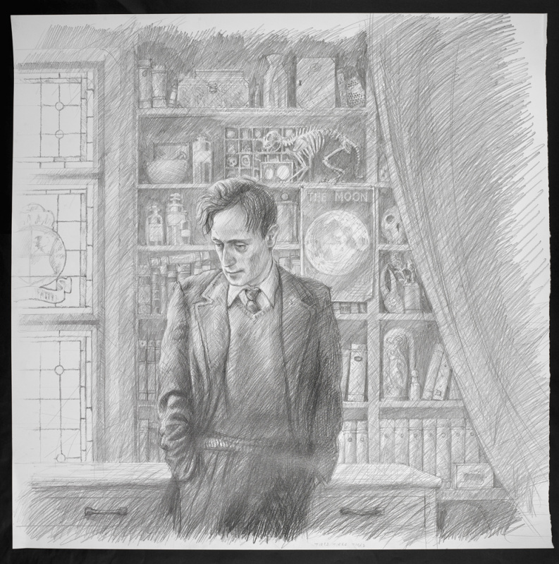 Люпин - это мой crash после близнецов Уизли. Вот серьёзно - за него, Тонкс и Фреда я Роулинг не прощу! Книга летала в стену, слезы промочили насквозь несколько подушек - в общем, это была моя подростковая травма. Но время идёт, а к Люпину и близнецам я все так же неровно дышу и наслаждаюсь каждым их появлением в книгах. И спасибо Джиму Кею за великолепный портрет профессора Люпина. Мне кажется он идеально смог передать характер этого персонажа.