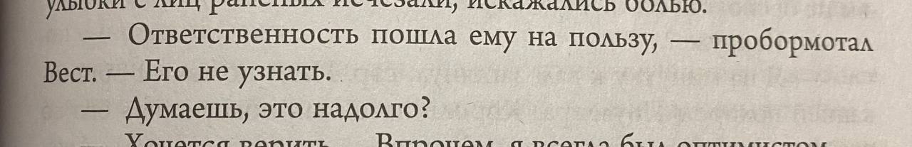 Достойное завершение трилогии. Аберкромби мастерски играет нашими чувствами и ожиданиями и по итогу все равно все сделал по своему. Как по мне эта часть вышла динамичннее первых двух книг и от этого только плюс. А вот минус как всегда неудачная аннотация с долей немаловажных спойлером.