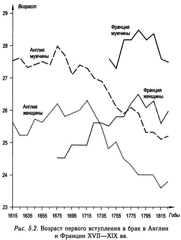 (здесь не указано, но позднее вступление в брак объясняется тем же, что и сейчас, стремлением обеих сторон заработать денег для объедения ресурсов (а.к.а. брака))Адепты сказок о фантастической плодовитости супер-вуменов прошлого немного опечалены:
