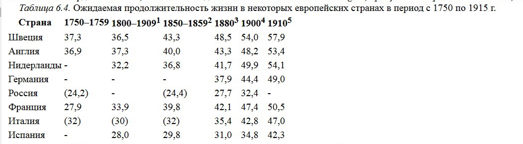 Обратите внимание на ожидаемую продолжительность жизни в Рос. Империи (которая всегда отставала от Европы, увы). Потому что в "поле рожали", да. (И в там же дохли.)