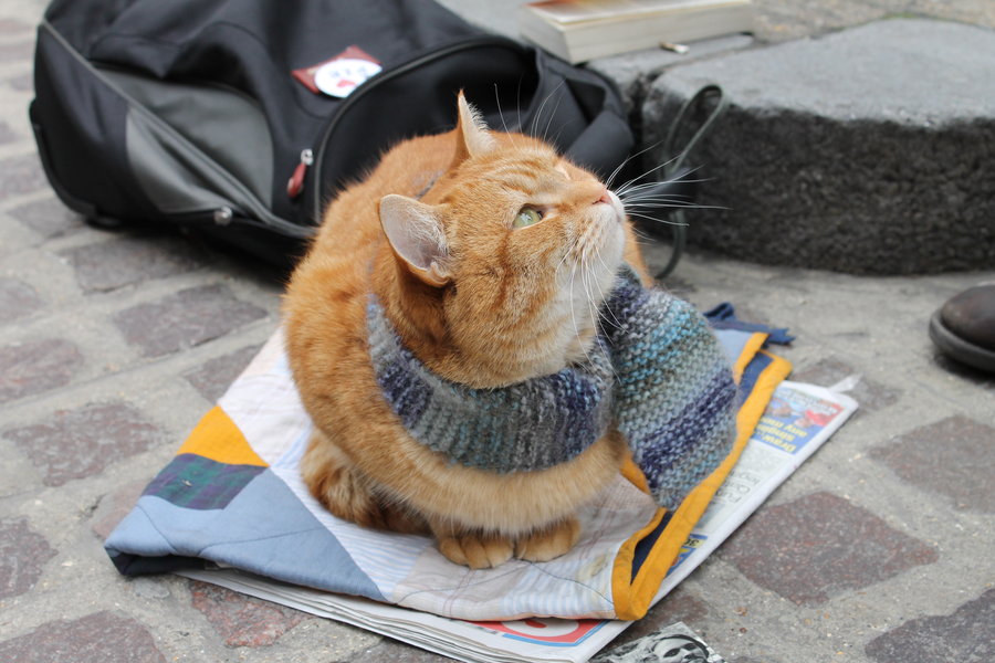 Честно сказать, на совсем понимаю, почему прохожим хотелось сфотографировать кота, передвигающегося на плечах Джеймса, до их известности. Мимо постоянно проходят люди с животными на руках. Почему именно этого кота хотели сфотографировать?