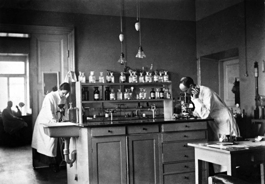 — Вы не догадываетесь?Примерно 1916-1920 год. Лаборатория First Medical Clinic. Источник: Helsinki University Museum.О разнице подходов написано многое.
