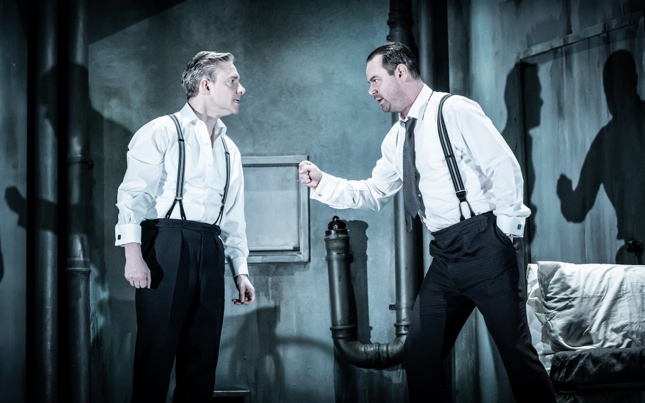 Итак, Бен (Алексей Вдовин) и Гас (Константин Плотников) приходят в некое помещение и привычно начинают его обживать. Ложатся спать, идут на кухню, читают газету. 1,5 часа актёры держат зрительское внимание, на сцене между ними постоянно что-то происходит. Они перебрасываются малозначительными фразами, обсуждают футбол, дурачатся. Но за этим фарсовым поведением ощущаются тревога и напряжение. Герои ждут звонка. Гас нервничает и задаёт вопросы, которые при их специфике работы не задают. Я хотела угадать, в какой момент пойму из спектакля их «профессию», но всё-таки упустила, мешало то, что я изначально знала, кто эти парни «на грани нервного срыва».