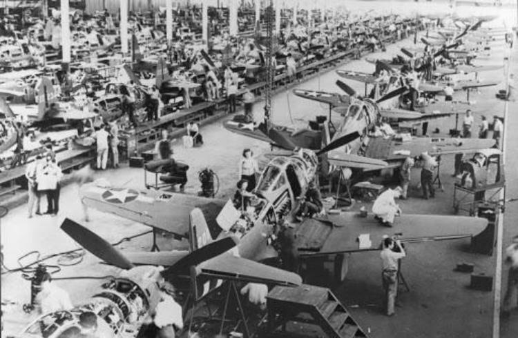 Цех по сборке самолетов Bell P-39 «Аэрокобра» в США для СССР