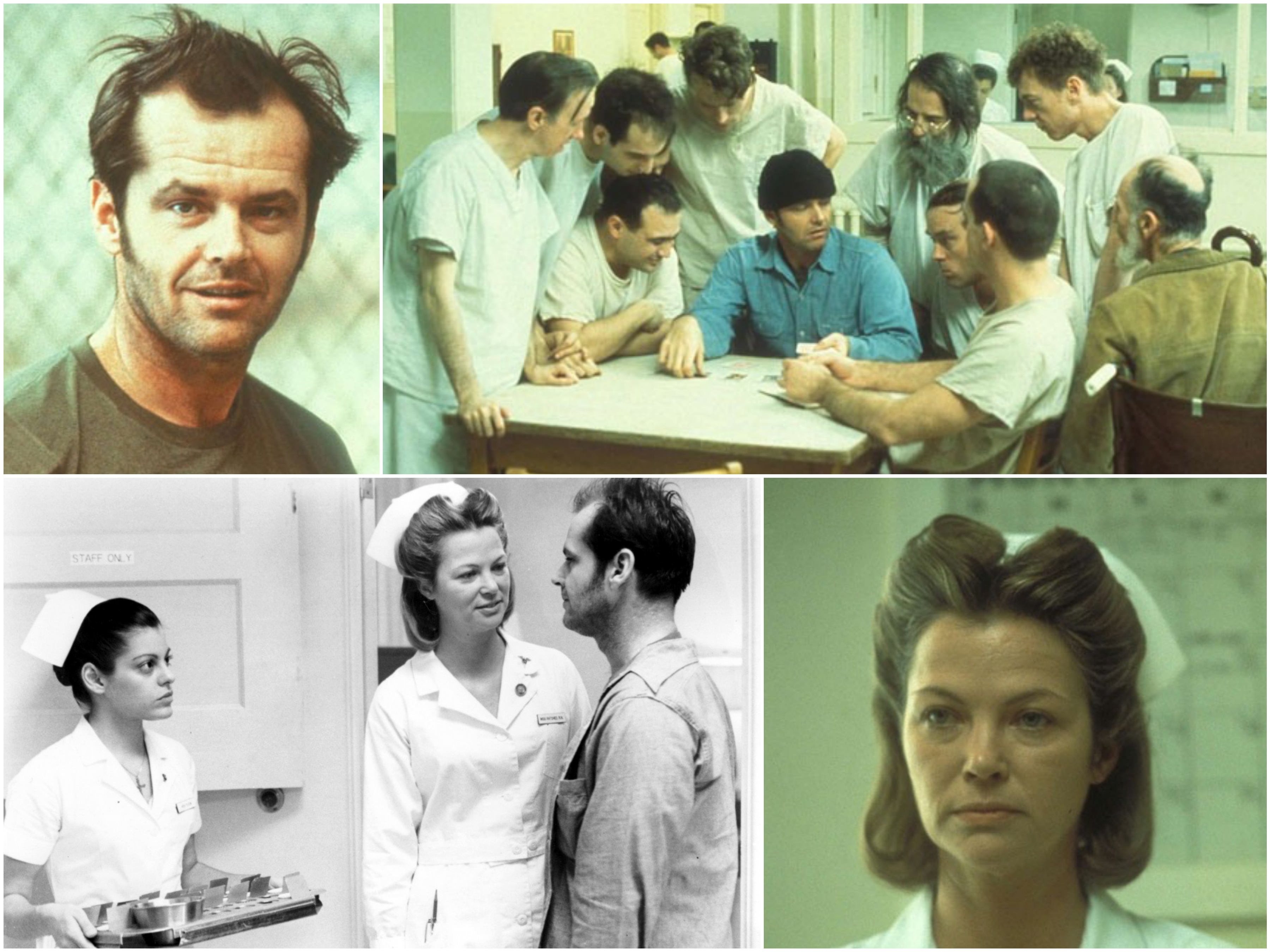 Но вернемся к книге. В центре романа психбольница, где "правит" не главврач, а медсестра-тиран, которая установила железный порядок и пресекает любое неповиновение и инакомыслие среди пациентов... И вот, появляется Мак Мерфи, средних лет проныра, падкий на женщин и азартные игры и живущий на всю катушку, который, притворившись психом, решил избежать тюрьмы и отсидеться в комфортабельной больничке.. Но поняв, что под диктатурой медсестры, пациенты превратились в безвольных животных, он начинает сопротивляться..