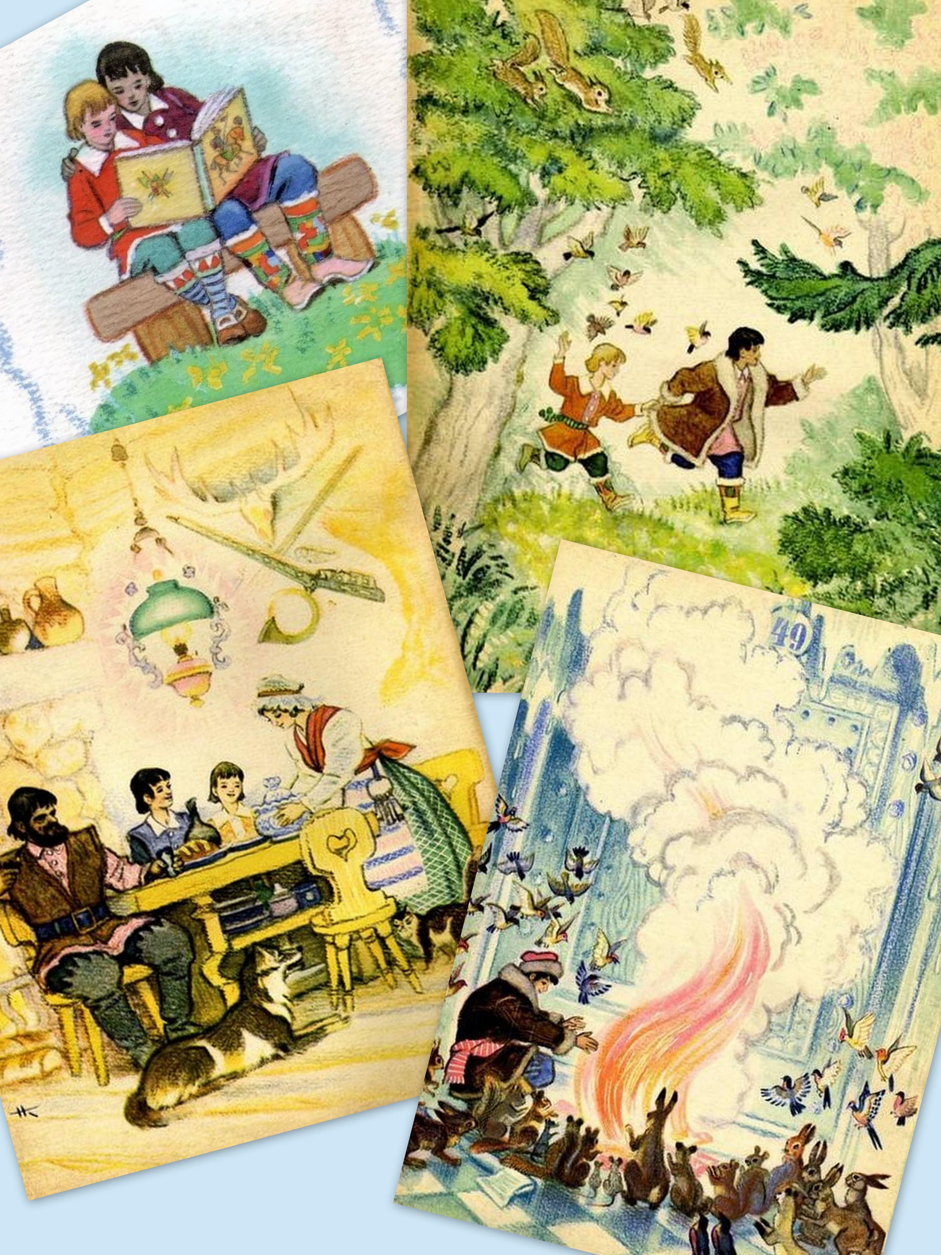 Зато Прадедушка Мороз, который, вроде как, в сказке ужасно злой, мне почему-то показался хорошим воспитателем и не таким уж суровым. Возможно, он и не желал особого зла мальчику, а просто хотел его хорошенько проучить. А вот животных, с которыми он очень жестоко обращался, мне было реально жалко :( Тем более, что животные сыграли в сказке очень значимую роль! В благодарность за то, что Старший брат их спас, они в ответ помогли ему спасти Младшего.