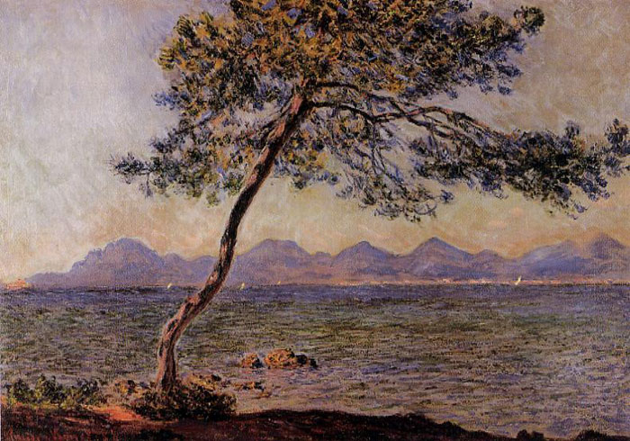 Утром их рельефные, четкие контуры проступают на небесной лазури, нежной и чистой, подернутой пурпуром, на классической лазури южных побережий. А вечером их лесистые склоны мрачнеют и черным пятном расплываются по огненному небу, кроваво-красному и зловещему. Нигде я не видел таких феерических закатов, такого зарева во все небо, таких пламенеющих туч; эта искусная и пышная постановка с ежедневно повторяющимися эффектами вызывает невольное восхищение, но показалась бы несколько аляповатой и смешной, будь она создана человеком.Нестерпимо хочется читать вслух. К слову, те же Эстрельские горы от К.Моне