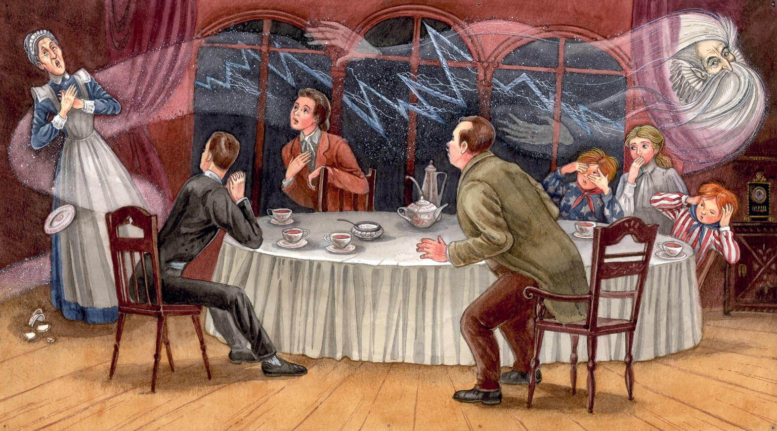 — Она была дурна собой и совершенно не умела готовить!Очень забавно было слушать про призрака, вспоминающего, когда и как он кого-то пугал. А тут приезжает американское семейство, которое вдруг его совершенно не боится. Оно ему даже предлагает мазь, чтобы он не звенел цепями и не мешал им спать. И вообще очень беспардонно и невежливо обращаются с не упокоенной душой