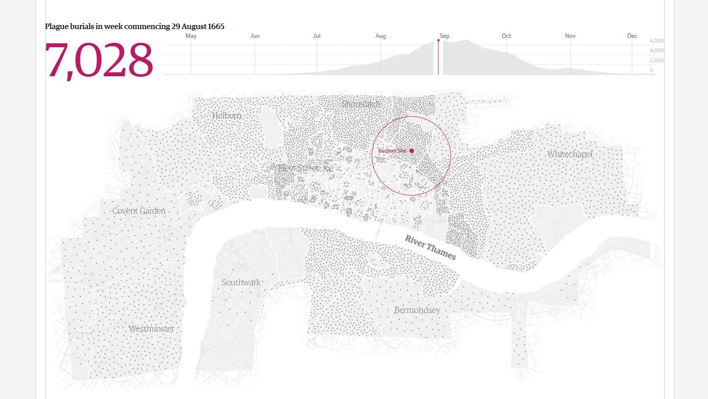 Я ж пережил беду!На сайте газеты The Guardian есть абсолютно потрясающая интерактивная карта. На ней видно, что своего буйства болезнь достигла в августе и пошла на убыль после сентября 1665 года. Вот ссылка: https://www.theguardian.com/society/ng-interactive/2015/aug/12/london-great-plague-1665-bills-of-mortality . Но, если нет желания ходить по всяким ссылкам, то ниже скриншот с карты, отражающей ситуацию на сентябрь: