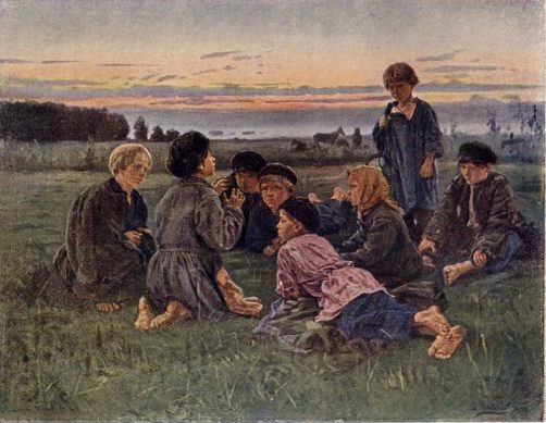 Читать далееКазалось бы простенький рассказ Тургенева, идет себе охотник, заблудился вышел к деревенским мальчонкам и слушал до утра под костерок и картошки всякие народные страшные рассказы.