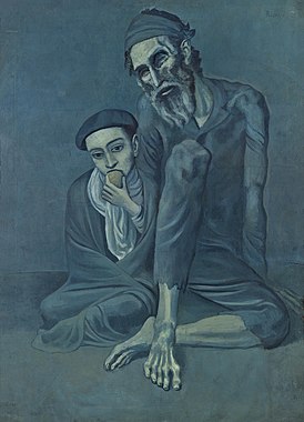 Я попыталась представить себе подходящее классическое полотно. Как назло, ничего интересного не приходило в голову — вспомнился только шедевр раннего Пикассо «Старый еврей и мальчик». Много лет назад я закладывала открыткой с репродукцией этой картины «Психопатологию обыденной жизни» Фрейда, которую никак не могла осилить, и с тех пор две печальных темных фигуры запомнились мне во всех подробностях.