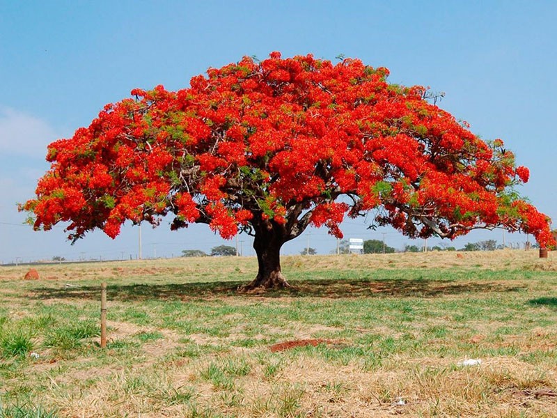 "В жаркие дни апреля во многих городах Вьетнама начинает цвести пышным красным цветом дерево фыонг. Вьетнамско-русский словарь предлагает вариант перевода: акация. Однако это явно не тот вид акации, что воспевается в романсах за белые грозди и душистый аромат. Красные цветы вьетнамского дерева фыонг запаха не имеют. В конце сезона цветения на месте огненных цветков появляются длинные-длинные стручки. Ботаники называют это дерево Дело́никс королевский или Огненное дерево."