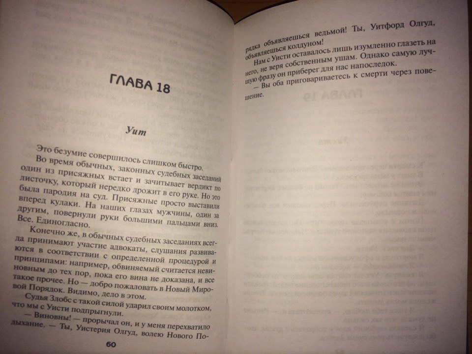 Поздней ночью в дом семьи Олгудов врываются вооружённые люди и арестовывают брата и сестру, Уита и Уисти.И знаете, что? Именно это там и происходит. То есть представьте себе, к вам домой ночью приходят какие-то люди и арестовывают вас. Казалось бы, это логично, ведь именно это обещают нам авторы. Но оказывается, что это не просто какие-то люди, а солдаты и действуют они согласно принятому законодательству. А вообще не так давно прошли выборы, и страну возглавил самоназванный Тот, Кто Избран, он же утвердил законы, согласно которым ведьмы и колдуны должны быть казнены, он же переделал всю систему власти. Но семейка Олгудов об этом ничего не знает. И не потому что они приехали из другой страны или пришли из другого времени, а просто так. До прочтения этой книги, я думала, что знаю значение выражения «сидеть в танке», оказалось — нет.