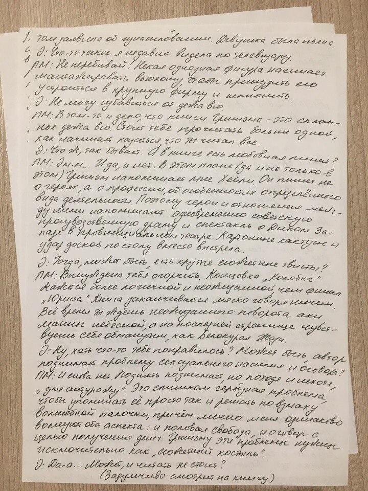 Э: Ну, хоть что-то тебе понравилось? Может быть, автор поднимает проблему сексуального насилия и оговора?