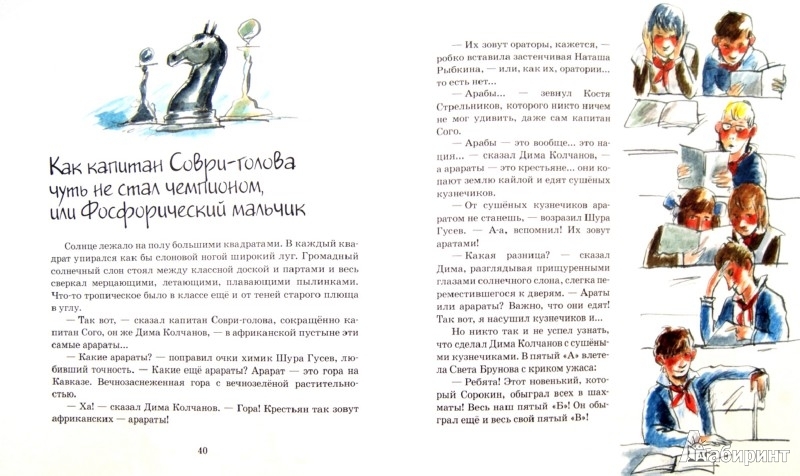 Эта книга — несколько (в разных изданиях — от пяти до восьми) историй из жизни Димки Колчанова по прозвищу Капитан Соври-голова… кстати, многие ли из сегодняшних читателей опознают отсылку к роману Луи Буссенара Капитан Сорви-голова ? Бесстрашный капитан Сого — из тех мальчишек, рядом с которыми никто не может чувствовать себя в покое и безопасности (особенно, конечно, родители): столько диких фантазий рождается у такого пацана, а самое главное, он немедленно воплощает их в реальность.