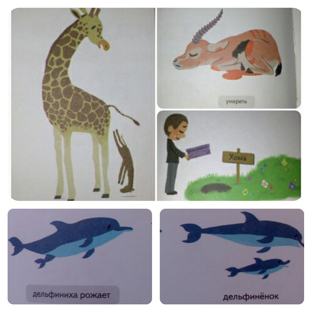Страница с родами на него не произвела впечатления, он знает, что млекопитающие появляются из маминого живота, там все так и изображено.