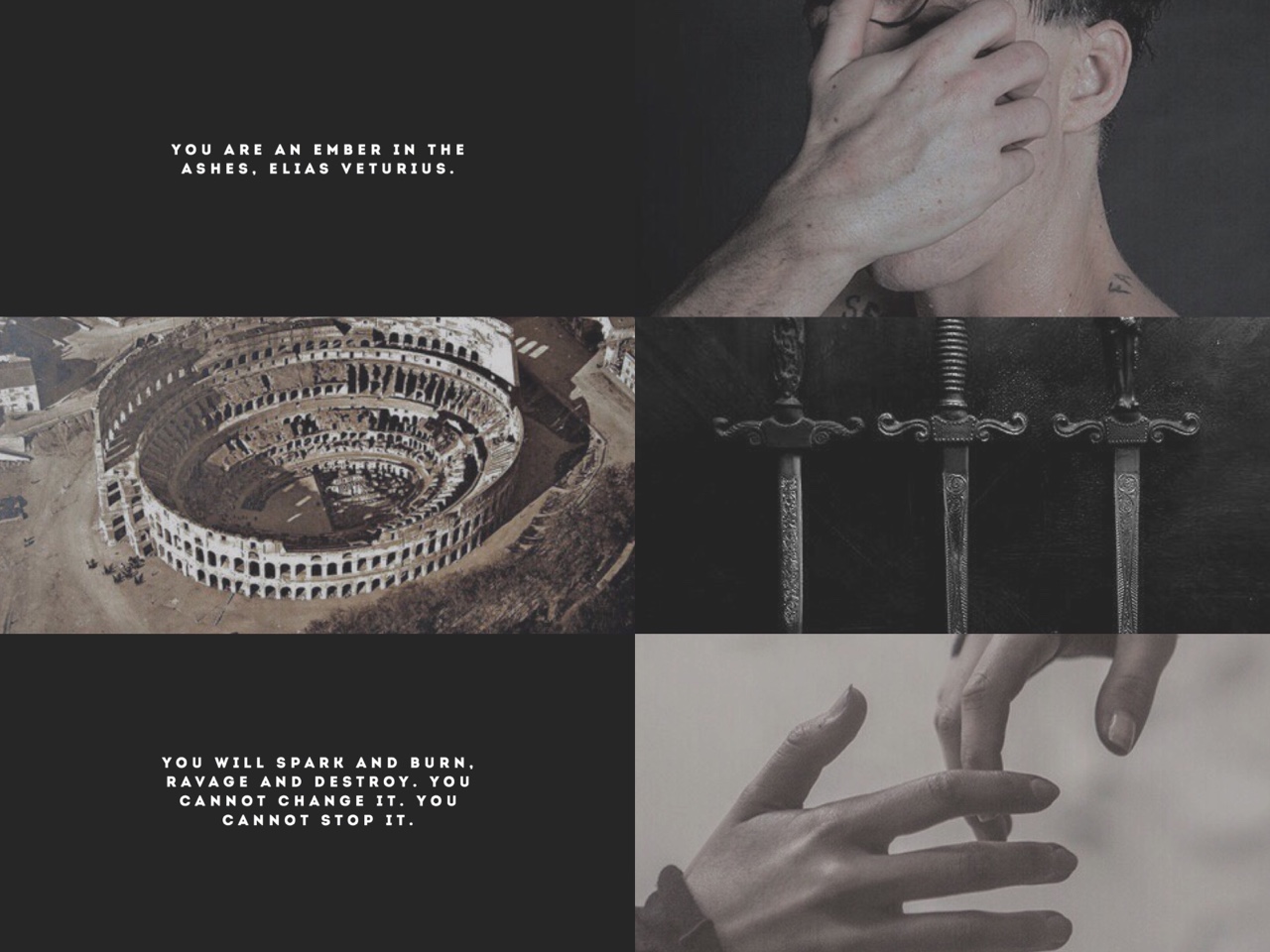 Элиас - Маска поневоле, выросший в Академии, выученный убивать. Ему претит это все, он не хочет этого. В Империи предательство карается смертью, но ему все равно. Главная цель - сбежать подальше от этого ада. Он не может остаться в Академии. Такая жизнь не для него, ведь он небездушная машина для убийств.