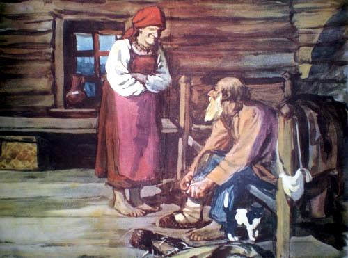Однако же долго ли, коротко ли он так шел, стал ему нож натирать ногу. Вытащил старик нож из-за голенища, взял в руку. Но и руке он оказался в тягость.