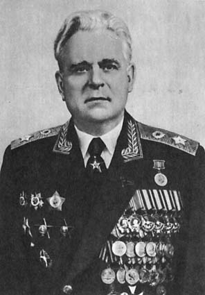 (Н. С. Хрущев докладывает по телефону И. В. Сталину о прибытии 5-й гвардейской танковой армии в район станции Прохоровка. Рядом, справа налево: командующий БТ и MB фронта генерал-лейтенант А. Д. Штевнев, командующий армией генерал-лейтенант П. А. Ротмистров и заместитель командующего армией И. Р. Апанасенко. 10 июля 1943 г.)