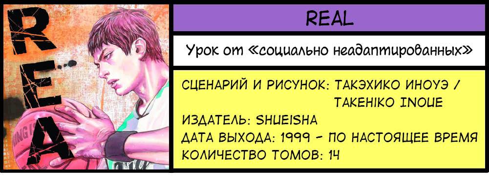 Если попытаться одним предложением сформулировать то, о чем повествует работа Иноуэ, то можно сказать, что «Real» — это манга о поиске самого себя. Что бы с тобой ни случилось, сколько бы препятствий ни стояло на твоем пути — важно поставить перед собой цель, смело идти ей навстречу и оставаться самим собой.