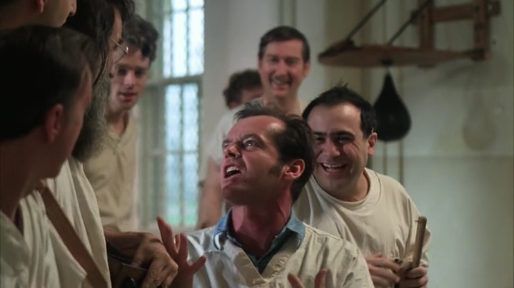 И вот у нас появляется герой, который полностью изменит их мировозрение, который их действительно вылечит и поможет сломать все барьеры. Действительно ли это так? Макмёрфи — абсолютно нормальный человек, перешедший в эту больницу просто ради смены работной фермы, отбывая наказание, на новое место, где с большим комфортом можно продержаться эти последние 6 месяцев наказания.У наших пациентов появляется герой, который борется с системой и, казалось бы, не сдается.