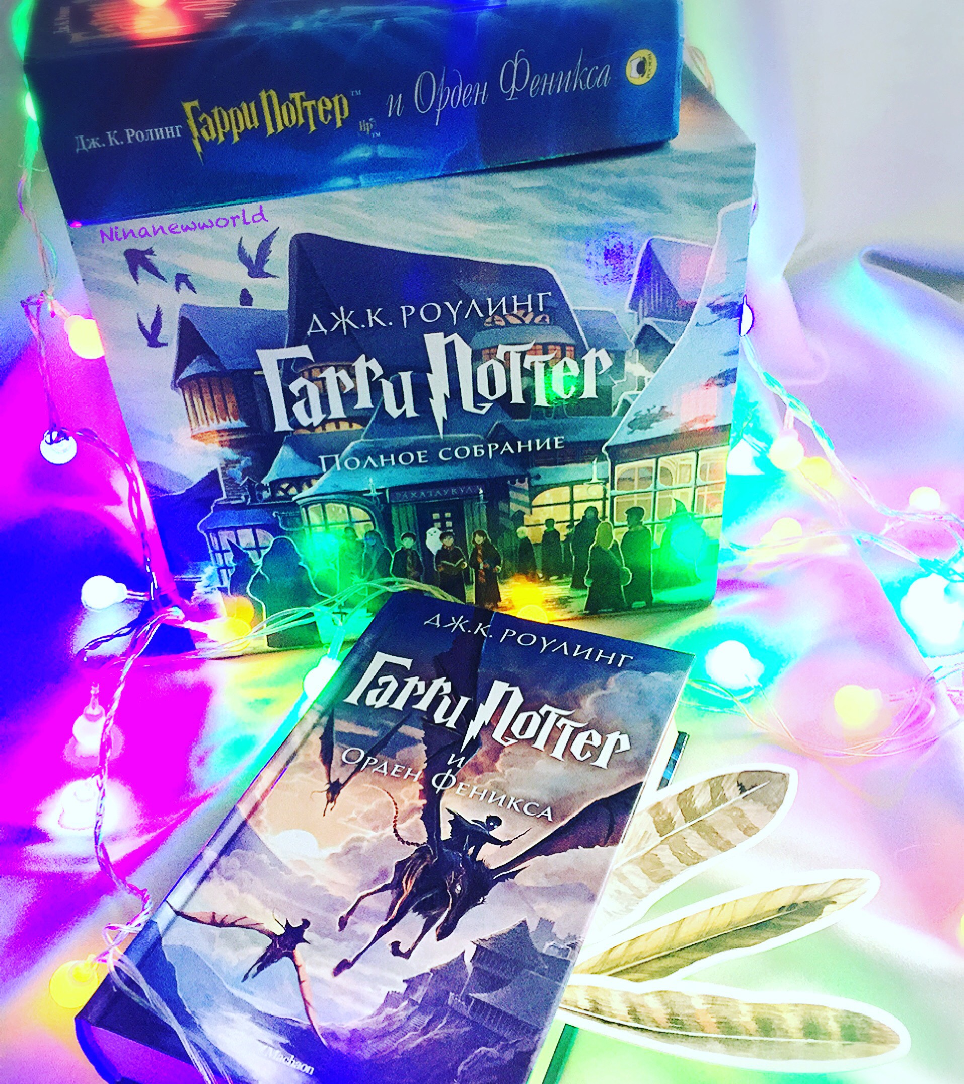+ Внешнее оформление книги. Была взята оригинальная обложка во всех книгах серии и это явно выигрышный вариант. Да еще и подарочный бокс оформлен отлично. Как и корешки книг - они образуют величественный Хогварц, если стоят по порядку.