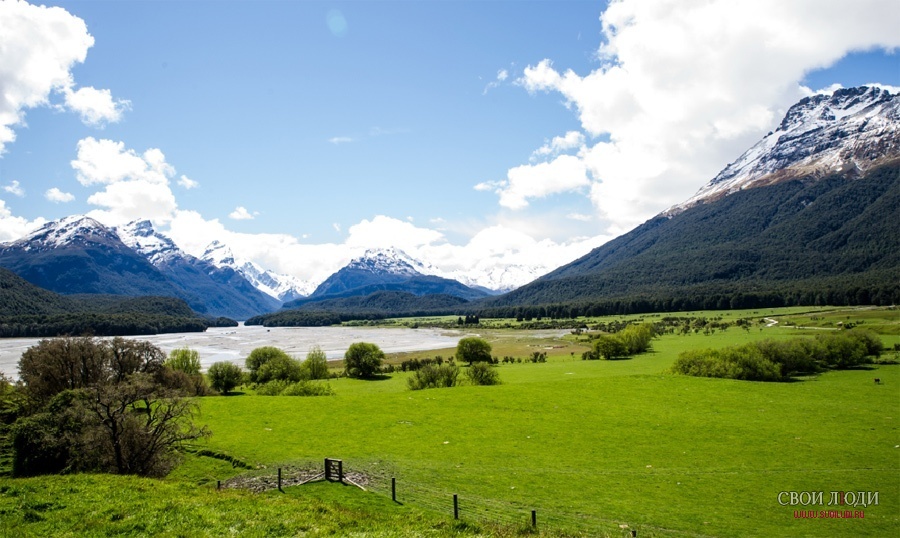 Просторное плато обрамляли вершины, увенчанные вечными снегами. Его перерезали потоки ледяной воды, три озера матово-зеленого цвета покоились на его поверхности. Над плато почти до уровня вечных снегов зеленели пучки гигантской травы, но лесов не было. В отдалении стояли низкорослые сосны и пирамидальные тополя, отмечая своим присутствием одинокие фермы. Воздух был неправдоподобно чист и, казалось, только что излился из голубой купели небапосле которых мне неудержимо захотелось в Новую Зеландию…