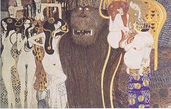 Густав Климт "Бетховенский фриз". "Силы зла" - Тифон и его дочери.
