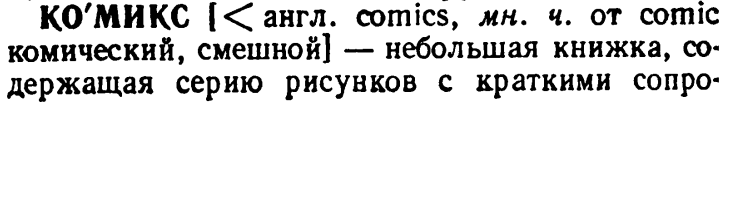 Листали тут на днях с товарищем очередную энциклопедию. Ну, если быть уж совсем точным, "Словарь иностранных слов" 1989 года издания. Надо сказать, книга прелюбопытнейшая. Так вот, наш взор устремился к странице 244 с разъяснением слова "Комикс".