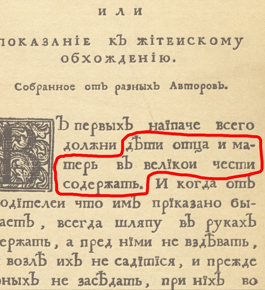 Это одно из правил хорошего тона для юношей и девушек дворянского сословия, изданных почти триста лет назад еще при Петре I. Не знаю, как сейчас, но мое поколение знакомилось с этой книгой при изучении литературы Петровских времен и учителя рекомендовали многие из них ввести в свой повседневный обиход. При современной распущенности нравов у молодежи, переложенная на современный русский язык, ух, как была бы полезна такая книжка даже в качестве учебного пособия в школе и дома.
