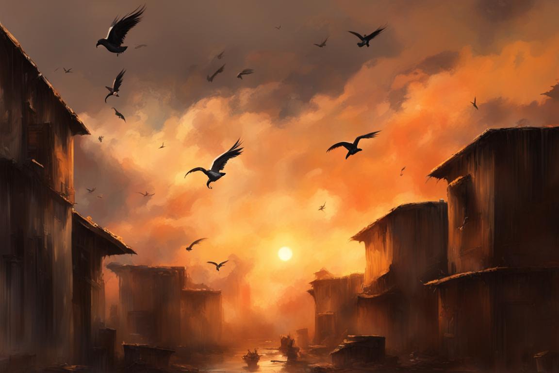 Я побежал к хате, но суховей настиг меня на пути. Вихри неслись, шурша песком и подымая к небу птичий пух и щепки. Тяжелая муть заволокла все вокруг. Солнце вдруг сделалось косматым и багровым, как Марс. Закачались и засвистели ракиты. Сзади дохнуло таким жаром, будто у меня на спине затлела рубашка. Пыль трещала на зубах и порошила глаза.
