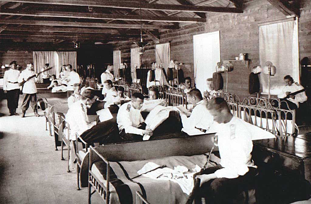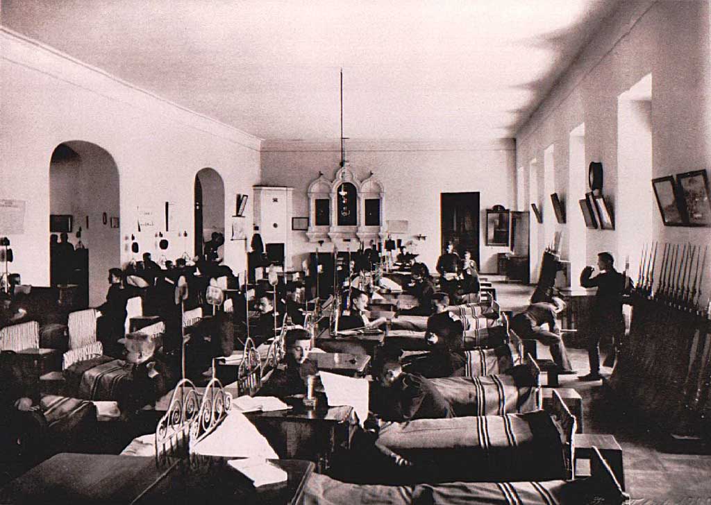 [...] Но вот и проходит волшебное сновидение. Как чересчур быстро! У всех юнкеров бурное напряжение сменяется тихой счастливой усталостью.Спальня 4-й роты - приготовление уроков