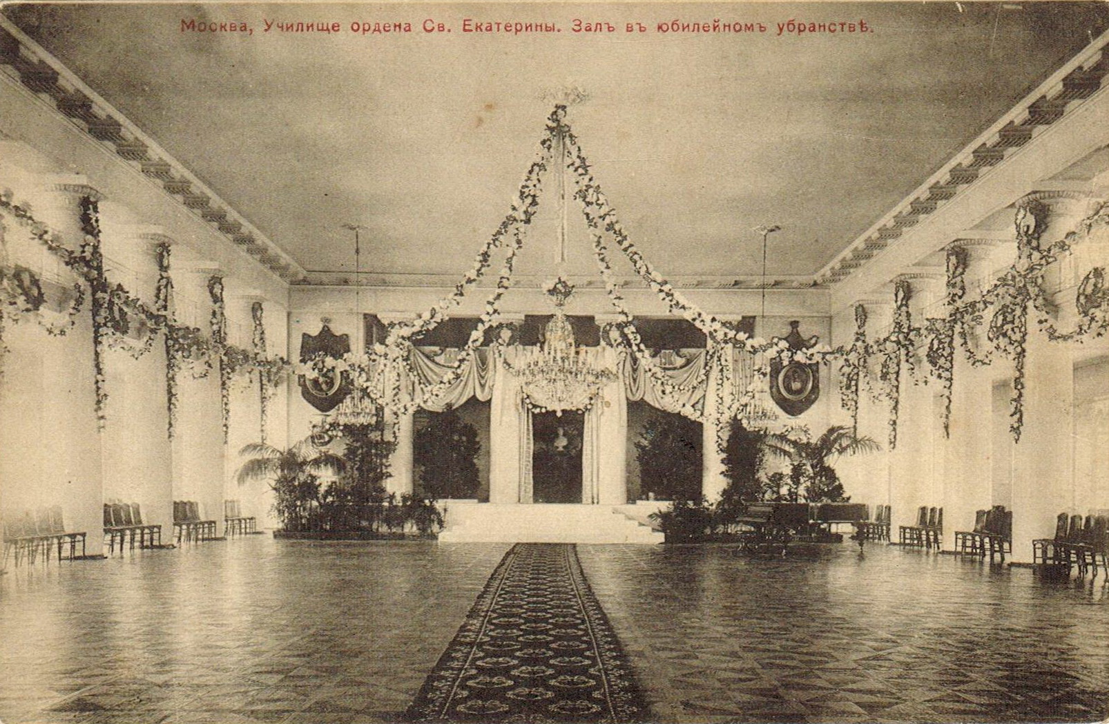 Ечкинские нарядные тройки одна за другою подкатывали к старинному строгому подъезду, ярко освещенному, огороженному полосатым тиковым шатром и устланному ковровой дорожкой.Зал училища ордена Св. Екатерины в юбилейном убранстве