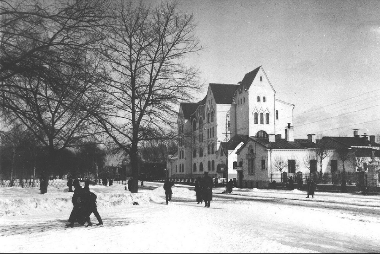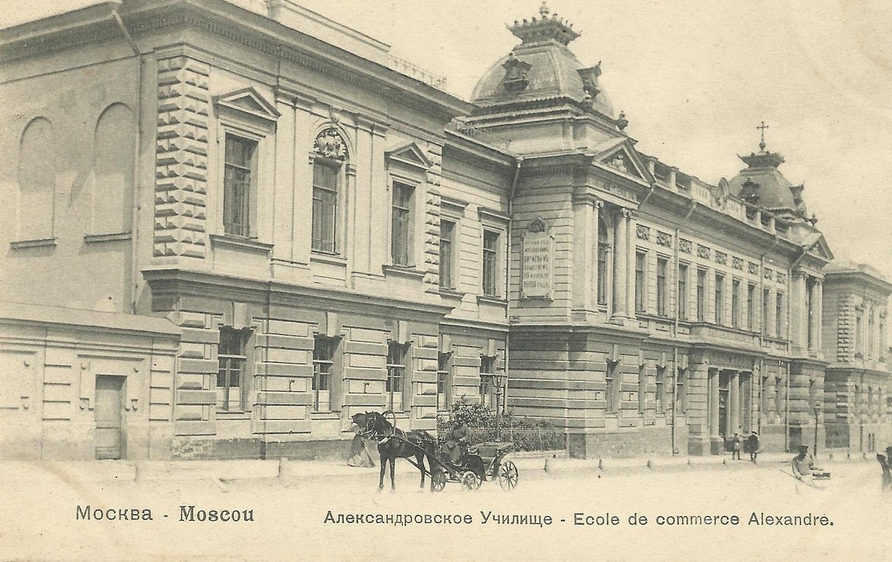 А потом опять широкая безымянная улица, и легкий лет саней, и ладный ритм лошадиных копыт: та-та-та-та – мерно выстукивает коренник, тра-та, тра-та, тра-та – скачут пристяжные. И все так необычайно в таинственном нездешнем городе.Вид здания Московского училища ордена Св. Екатерины