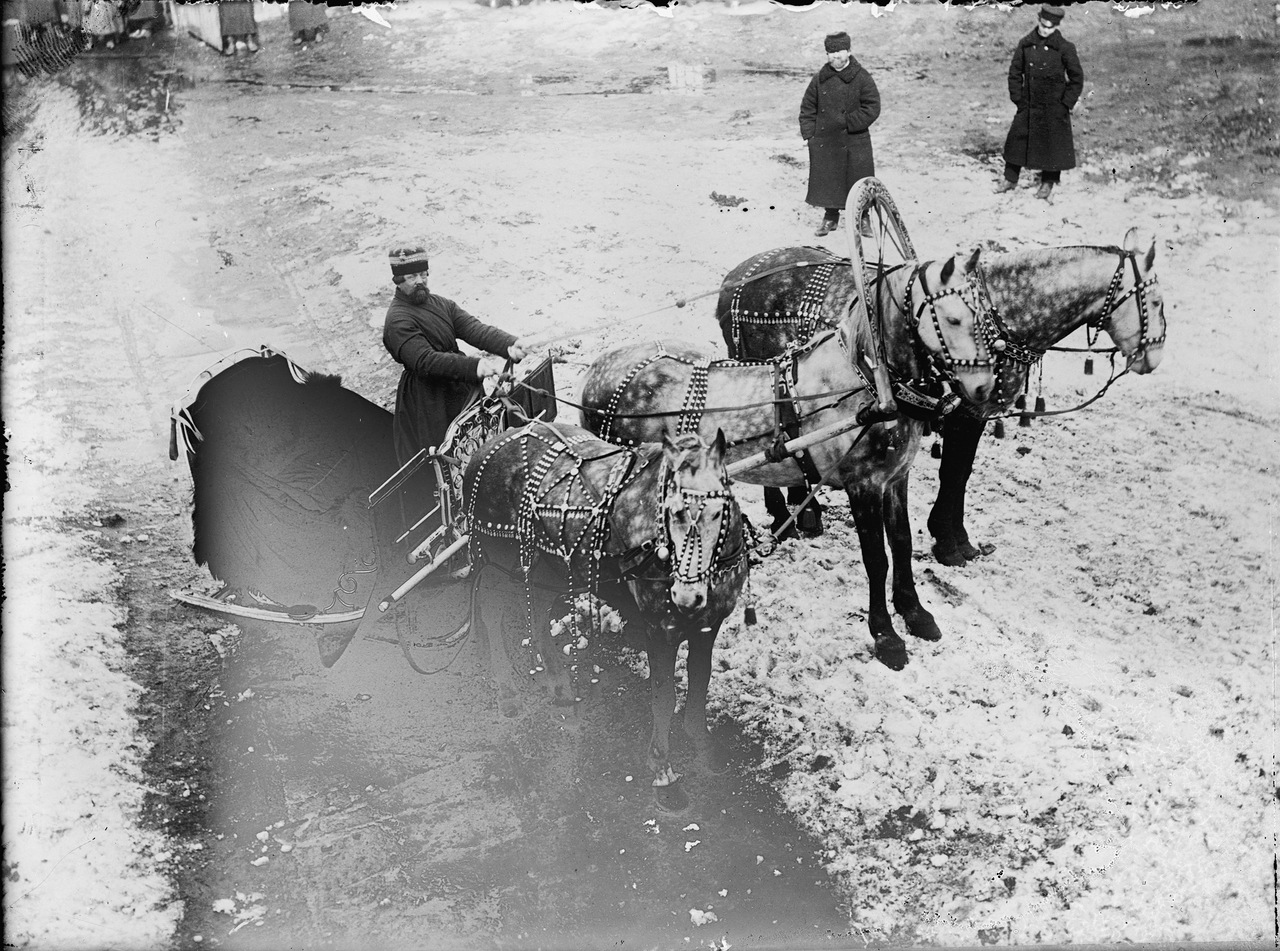 Временами неведомая улица так тесна и так запружена санями и повозками, что тройка идет шагом, иногда даже приостанавливается. [...]