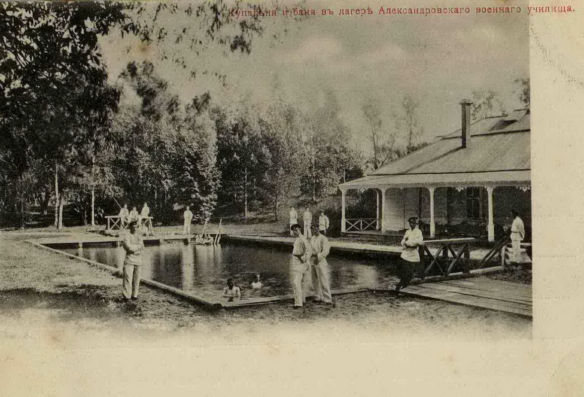 Они берутся за руки и плывут по длинному катку, одновременно набирая инерцию короткими и сильными толчками. Александров с восторгом чувствует в ней отличную конькобежицу.Купальня и баня в летнем лагере Александровского военного училища