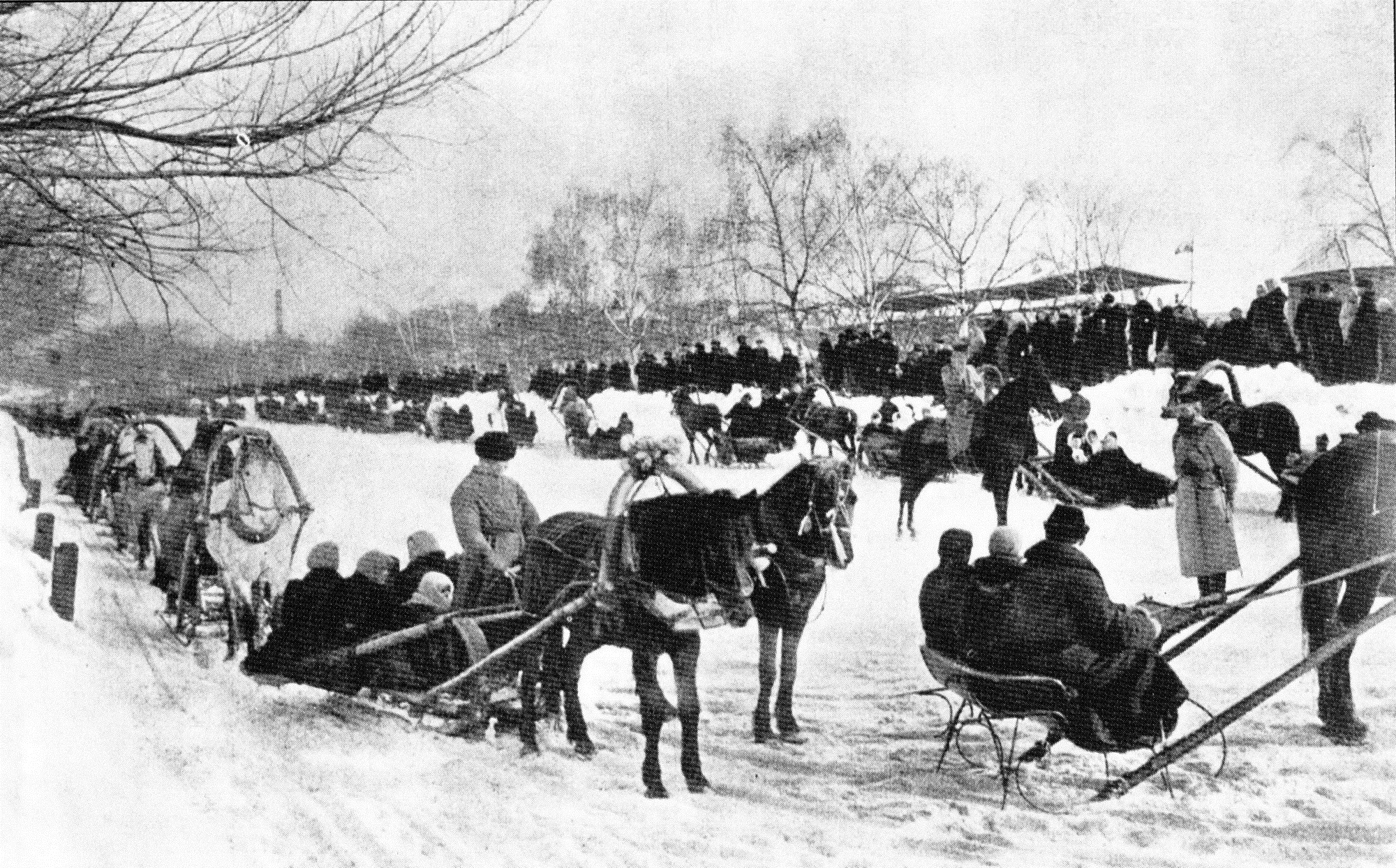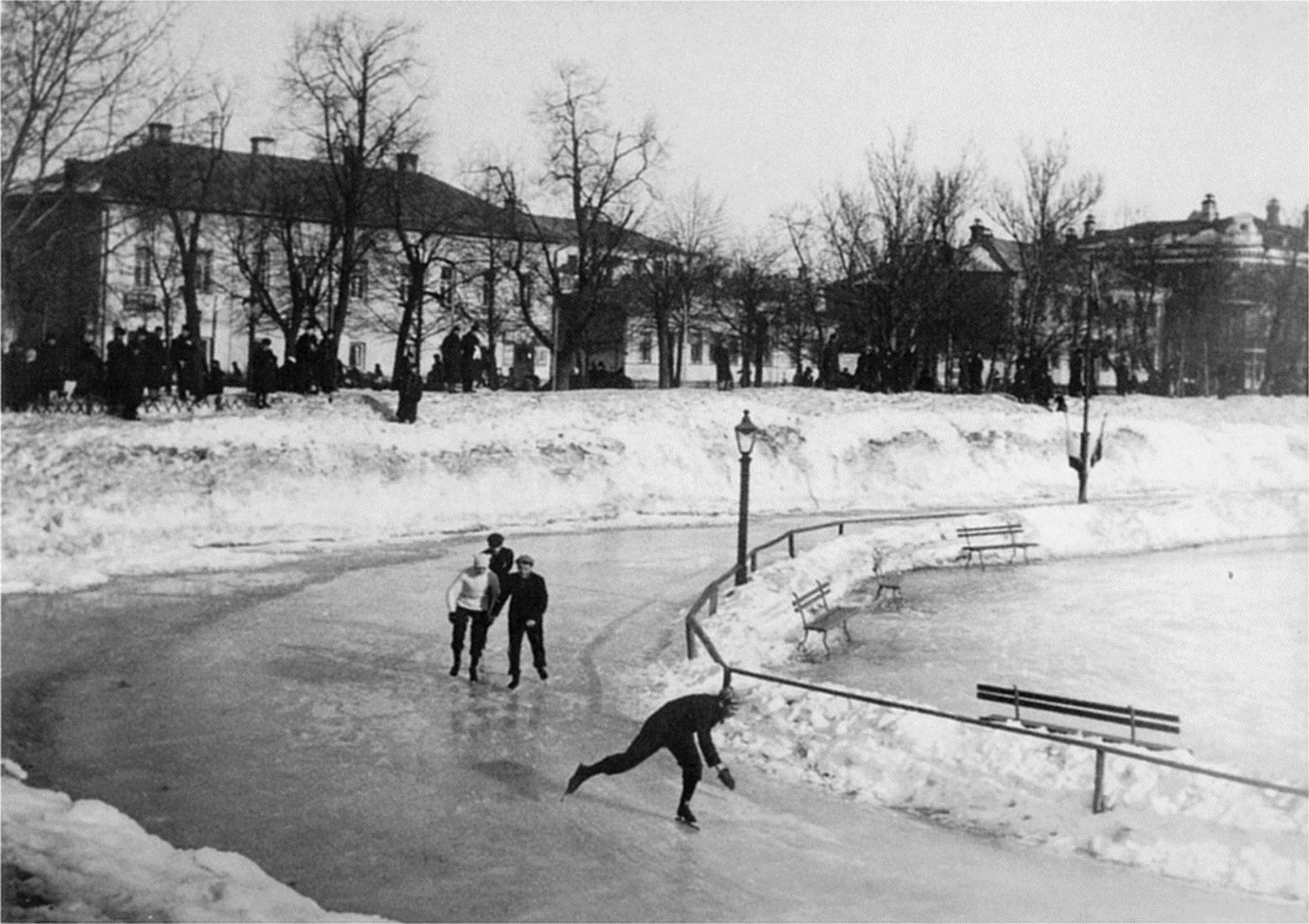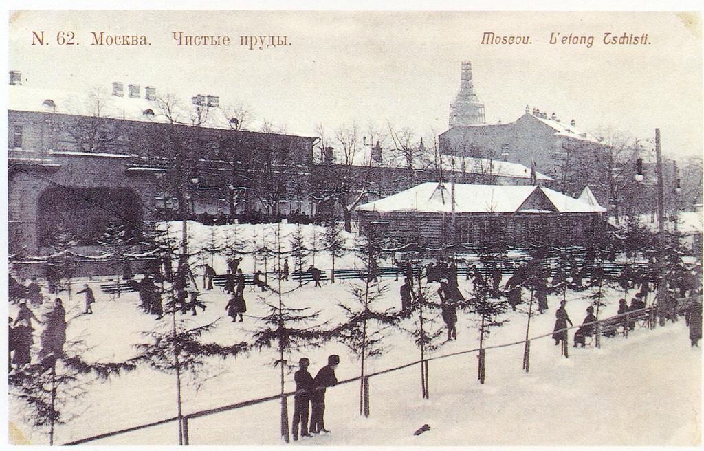 ...когда он быстрым полубегом-полускоком обогнул четыре раза гладкую поверхность катка и поплыл большими круглыми, перемежающимися размахами, то сразу радостно почувствовал, что ноги его по-прежнему работают ловко, послушно и весело и отлично помнят конькобежный темп.Каток на Чистых прудах