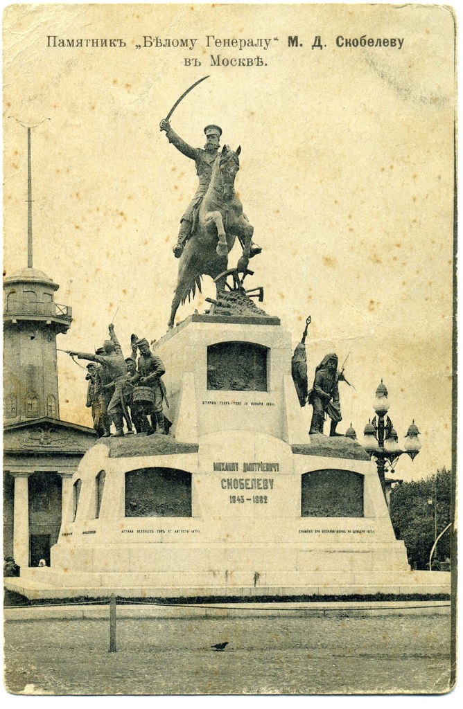 Первым долгом необходимо пойти на Тверскую улицу и прогуляться мимо генерал-губернаторского дворца, где по обеим сторонам подъезда стоят, как львы, на ефрейторском карауле два великана гренадера.И кажется ему в этот миг, что бронзовый генерал Скобелев, сидящий на вздыбленном коне посредине Тверской площади, тихо произносит:
